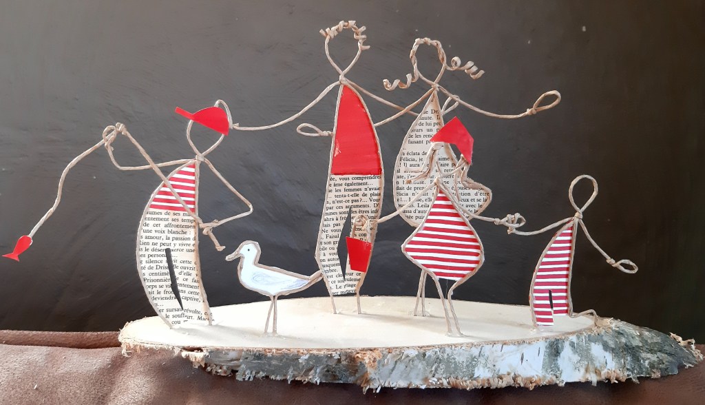 Créatrice belge dans la région tournaisienne, je crée des bijoux, des chèches (foulards), des cardes avec galets, des panneaux de bois et des créations en papier et en fil de fer.